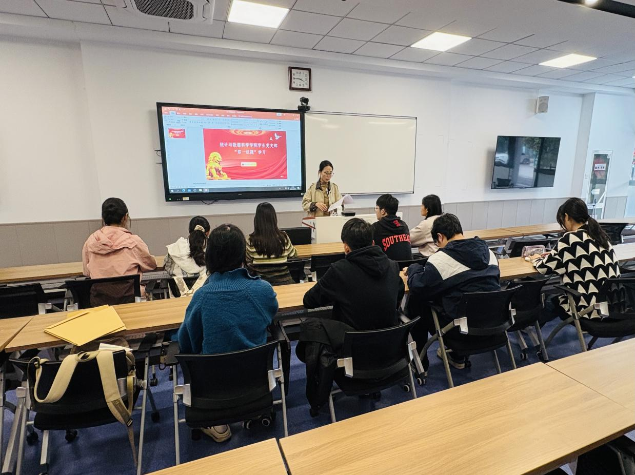 10月31日下午,统计与数据科学学院本科生学生党支部在澄园书院A106教室组织开展理论专题学习会。会议由党支部书记张慧主持,全体本科生党员参加。