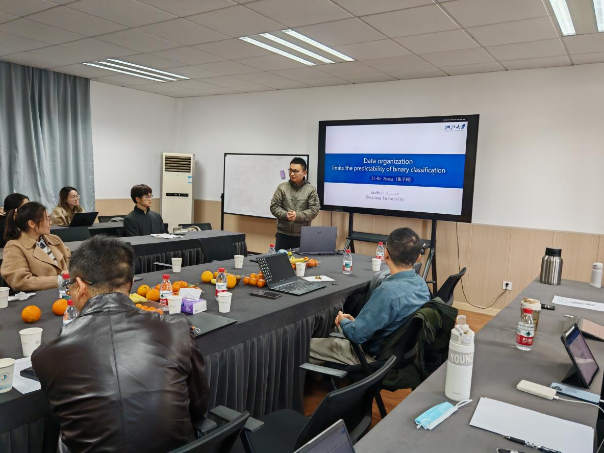 2025年11月29日上午10:00,浙江大学张子柯教授应邀为我院师生做学术讲座。讲座在位育楼417会议室举行,由武汉大学数学与统计学院教授吴晓群主持。