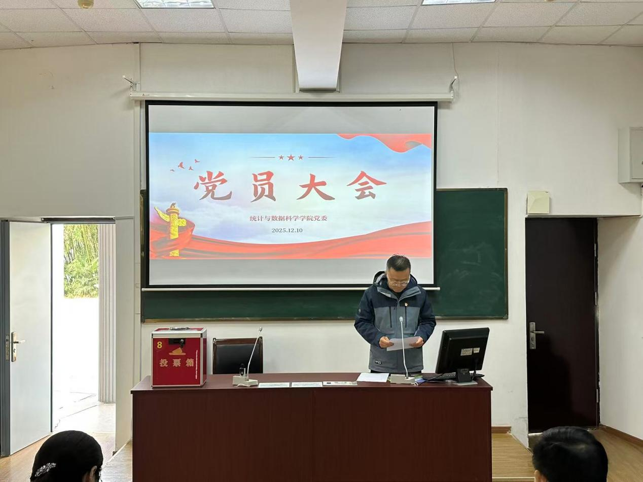 徐玉华代表学院党委向全体党员致以衷心感谢,感谢大家长期以来的关心与支持,希望大家发扬民主、履职尽责,确保选举顺利。学院党委副书记陆敏同志宣读了《统计与数据科学学院党委委员补选选举办法》及校党委组织部《关于同意统计与数据科学学院党委增补委员候选人预备人选的批复》,会议表决通过了选举办法和候选人名单,以及总监票人、监票人、计票人名单。