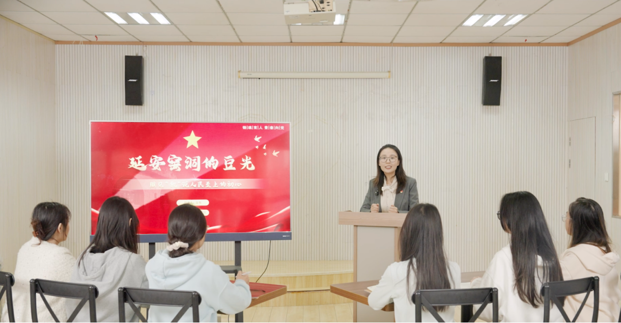 王荷波纪念馆参观结束后,党支部书记张慧老师围绕“中国共产党人精神谱系之延安精神”,结合统计学专业,分享了从黄豆听民声到数据解民忧的故事,激励青年学子以专业之力接续初心、服务民生,让延安精神在数据时代焕发新的光芒。