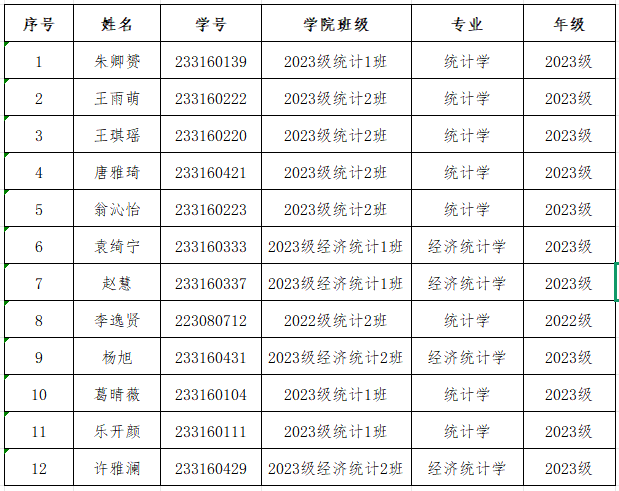 经个人申请,团支部测评,辅导员审核推荐,现场答辩,答辩小组评议,党支部考察讨论,学院党委会研究,统计与数据科学学院2025年秋学期本科生拟发展党员名单如下,现予以全院范围内公示,公示时间为2025年12月22日-2025年12月26日,如有异议请于12月26日下午5点前向学院张老师进行反映。办公地点:澄园书院办公室B202,电话:58318579。
