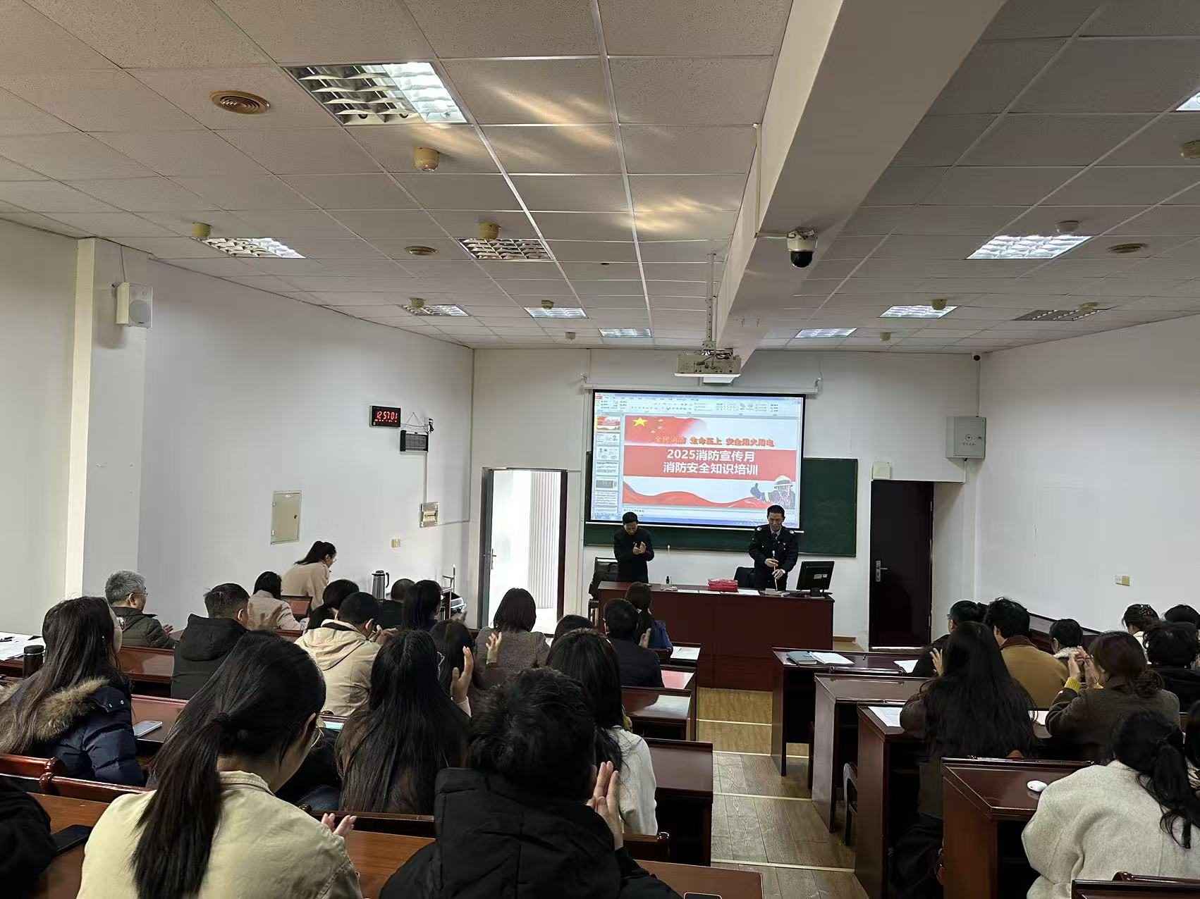 12月10日,统计与数据科学学院组织召开冬季安全稳定工作会议,并面向全院教职工及学生代表举办消防安全专题讲座。