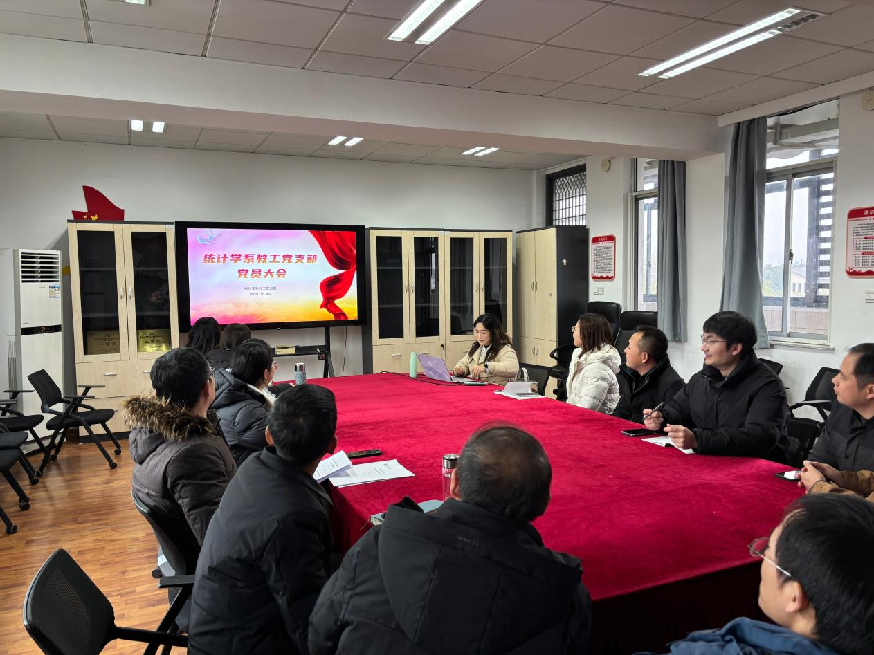 12月24日下午,统计学系教工党支部在位育楼407召开党员大会,组织全体党员教师集中学习近期重要文件精神。会议由党支部书记黄性芳主持,全体支部党员参会。