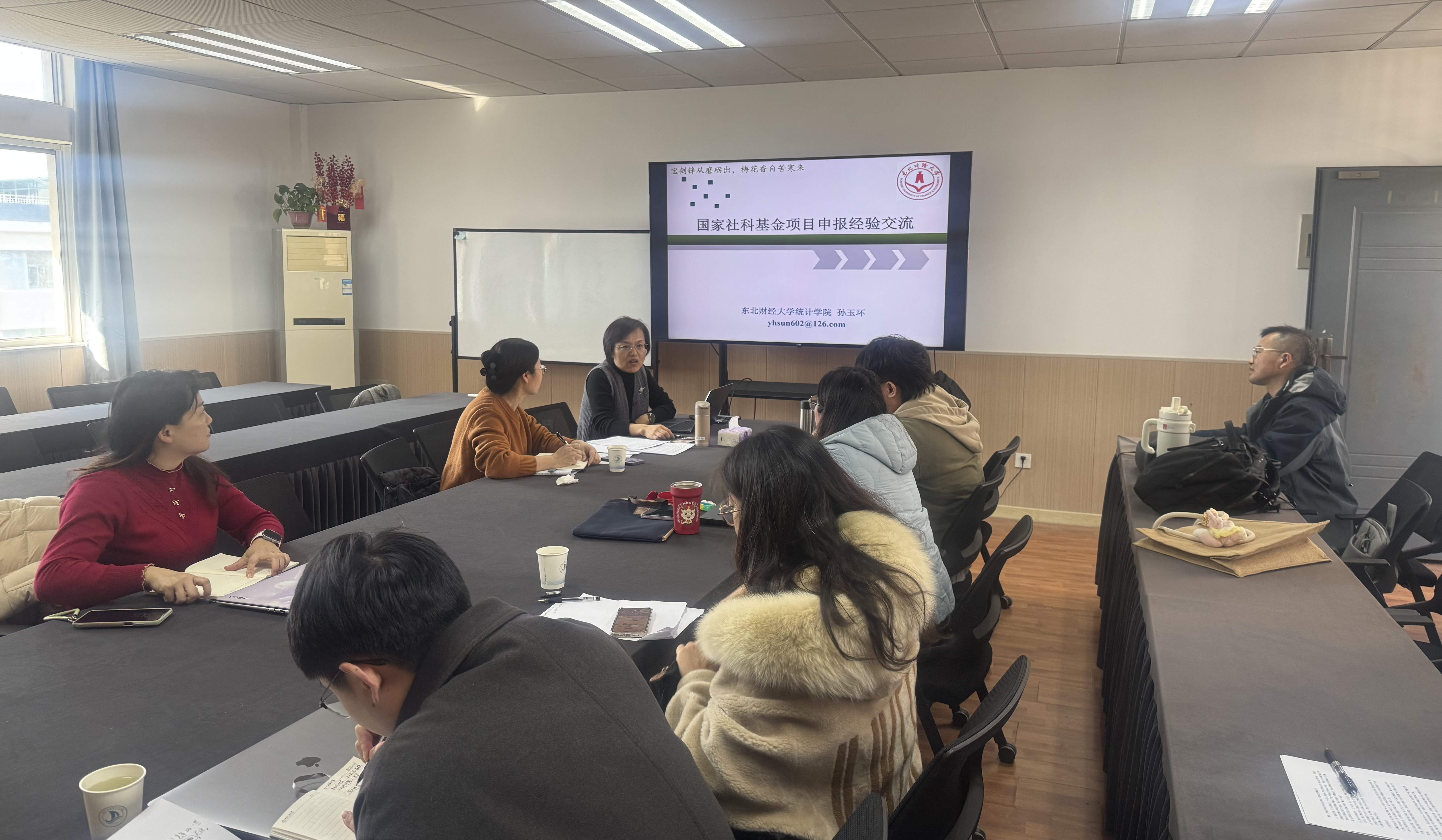 为进一步提升我院教师国家级科研项目申报能力与质量,1月15日下午,我院特邀东北财经大学统计学院副院长孙玉环教授莅临指导,就2026年国家社科基金项目申报选题、申报书撰写等方面开展专题辅导。会议由学院院长汪红霞教授主持。