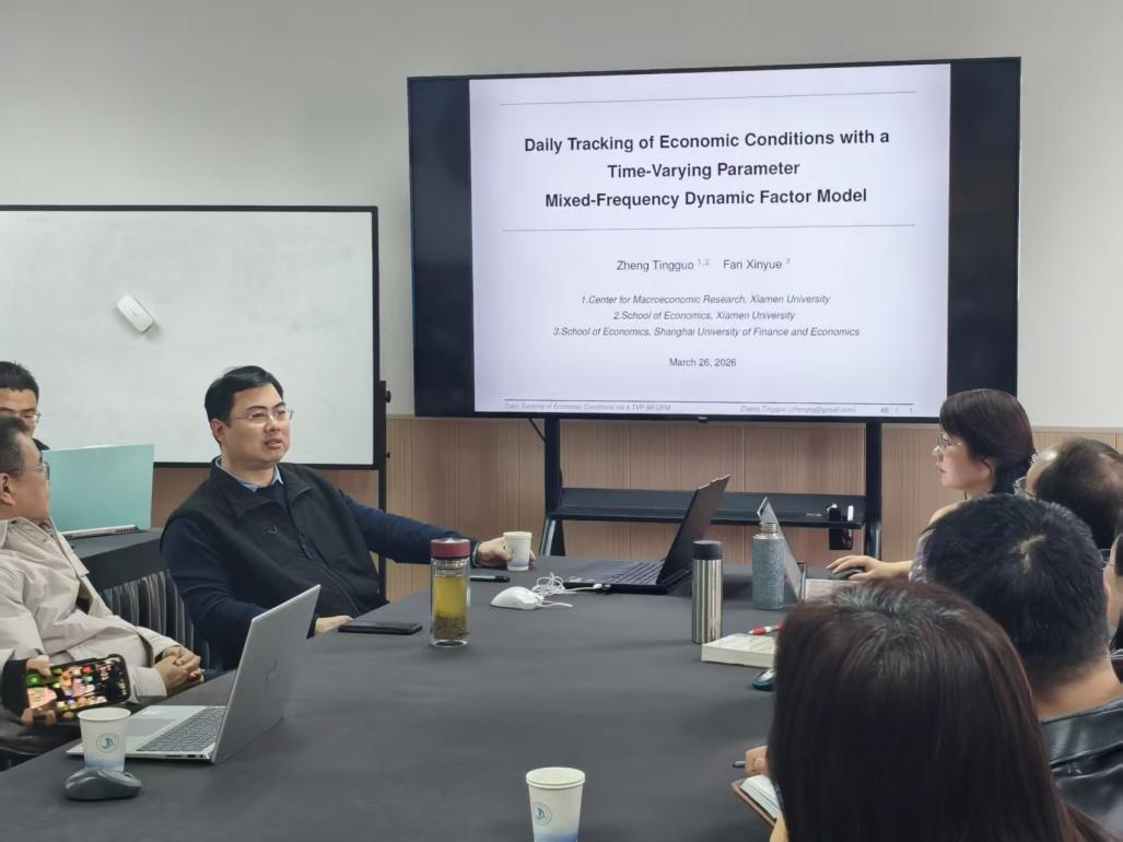 2026 年 3 月 26 日下午,我院特邀厦门大学教授郑挺国,在位育楼 417 会议室作题为《Daily Tracking of Economic Conditions with a Time-Varying Parameter Mixed-Frequency Dynamic Factor Model》的学术讲座,讲座由统计与数据科学学院院长汪红霞教授主持。