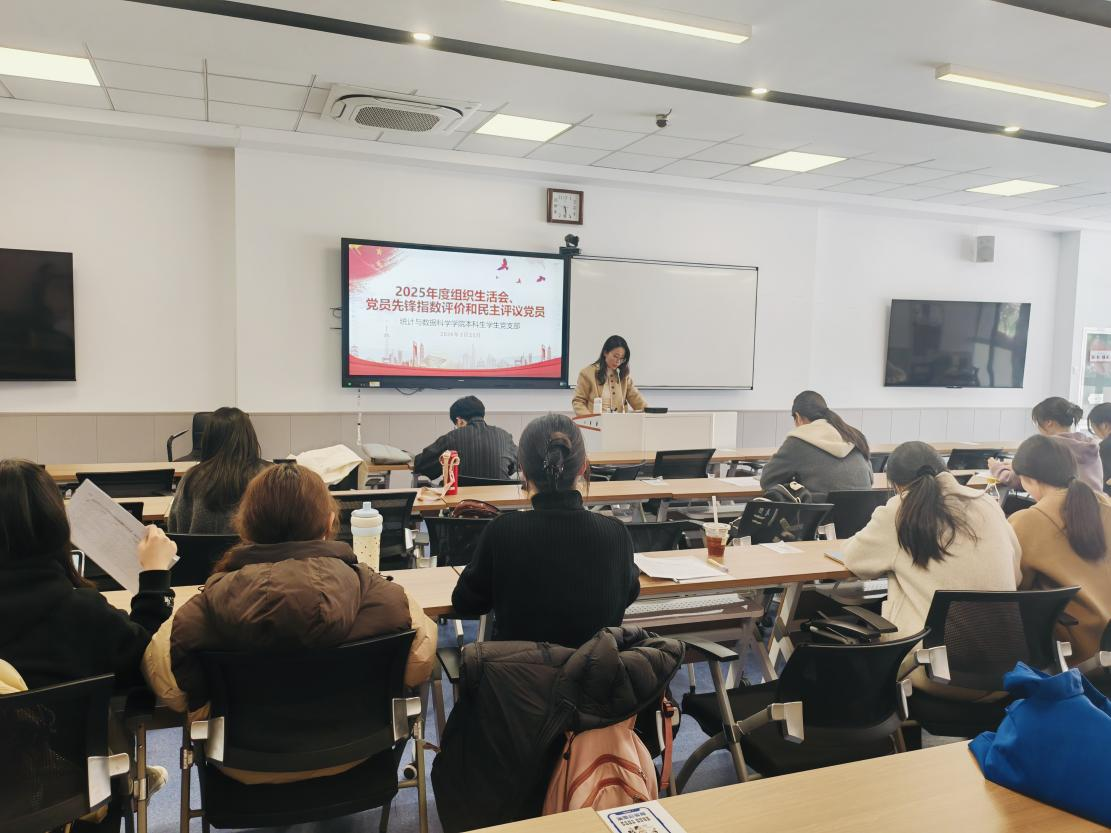2026年3月25日,统计与数据科学学院本科生党支部在澄园书院A106教室组织开展2025年度组织生活会,同步开展党员先锋指数评价和民主评议党员工作。会议由党支部书记张慧主持,全体党员参加。