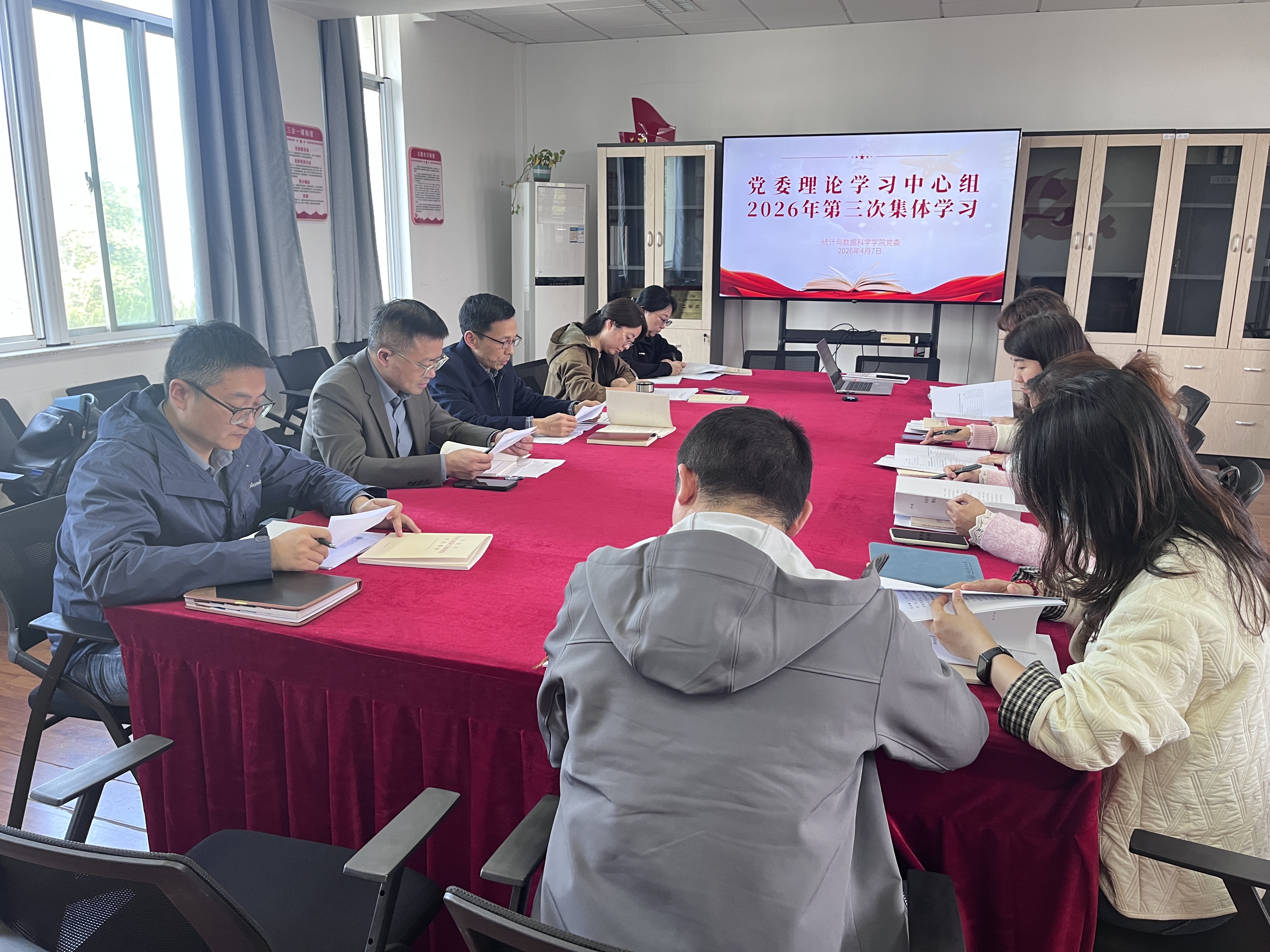 4月7日下午,学院在位育楼407会议室开展2026年度党委理论学习中心组第三次集中学习,学院党委书记徐玉华主持会议,全体党委委员、党支部书记及党政办公室相关同志参加会议。